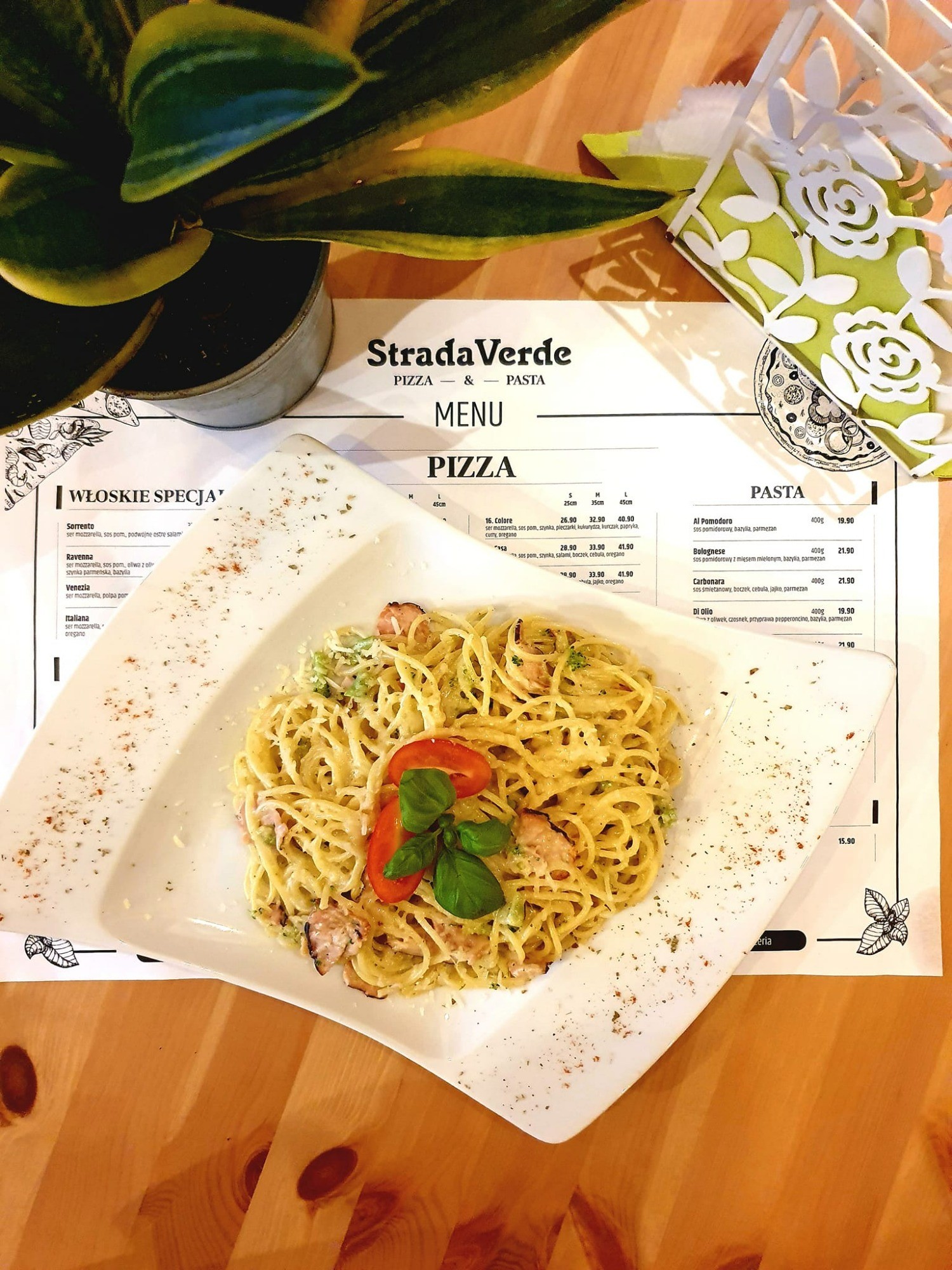 🍕🍝Nasza pizza i makarony to prawdziwa uczta dla podniebienia! Z najwyższej jakości składników tworzymy wyjątkowe kompozycje smakowe, które zaskoczą nawet najbardziej wymagające gusta. Czy to klasyczna Margherita, pełna świeżych warzyw i aromatycznej mozzarelli, czy może pikantna Diablo z dodatkiem ostrzejszych przypraw - - StradaVerde dostarcza niezapomnianych doznań kulinarne.